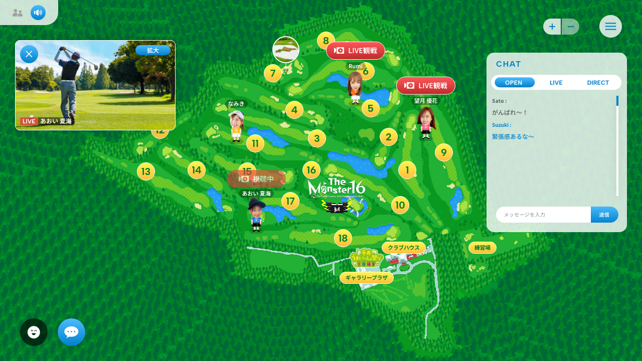 また、配信だけでなく、人気ゴルフ女子に直接見たいところを指示して撮影場所を移動したり、現地映像を見ながら配信者と一緒に会話ができたりするなど、リアルな場に足を運ぶことができないゴルフユーザーが、現場の臨場感を味わいながらトーナメントを楽しむことができます。