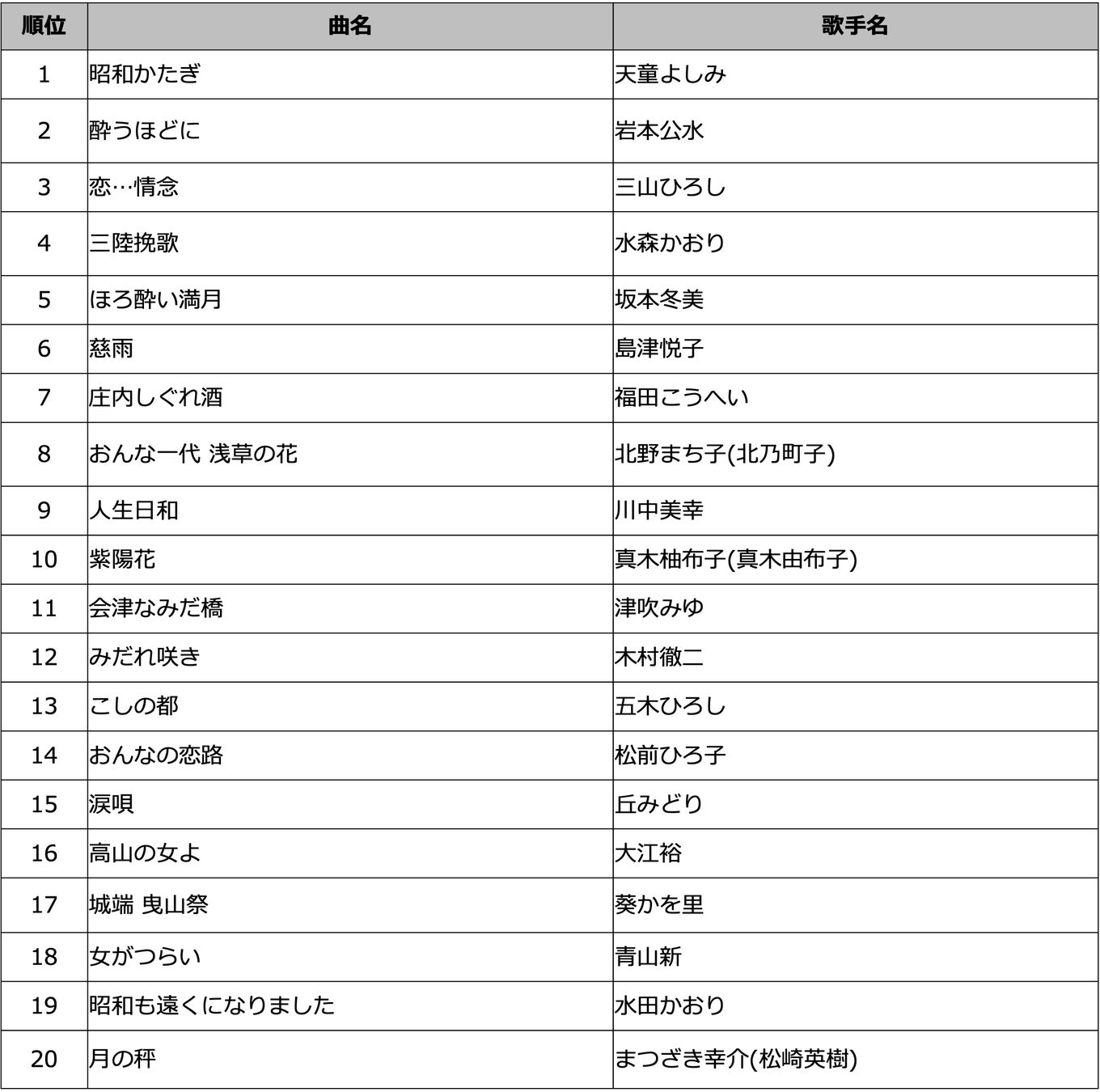 さらに、天童よしみの「昭和かたぎ」が演歌部門で1位を獲得しました。