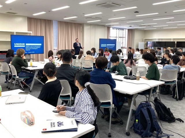 国連軍縮研究所(UNIDIR)の活動に焦点を当てた講演が行われ、核軍縮や生物兵器禁止条約などについて話されました。