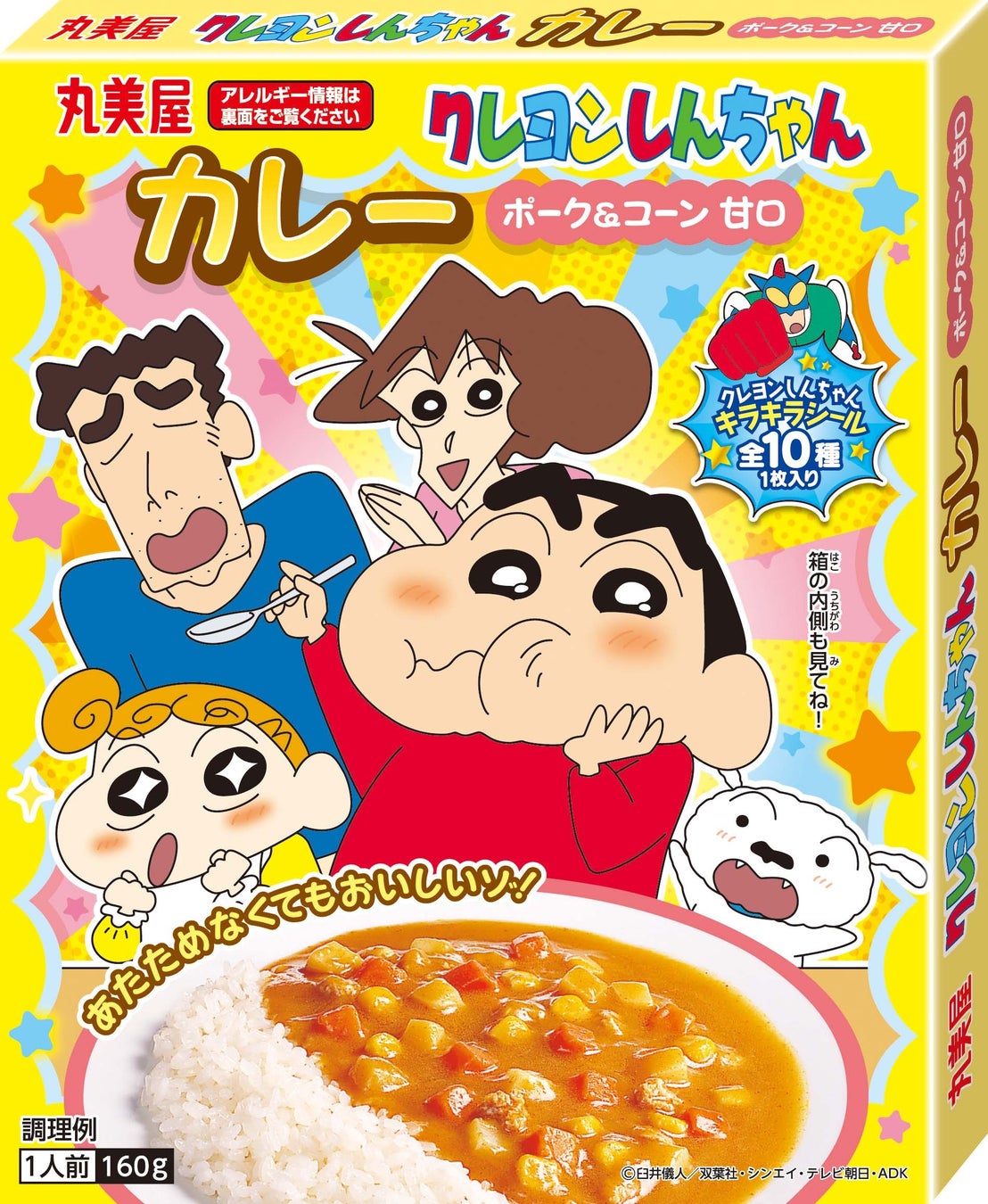 商品にはクレヨンしんちゃんのオリジナルシールが付いており、カレーやふりかけなど幅広いアイテムが揃っています。
