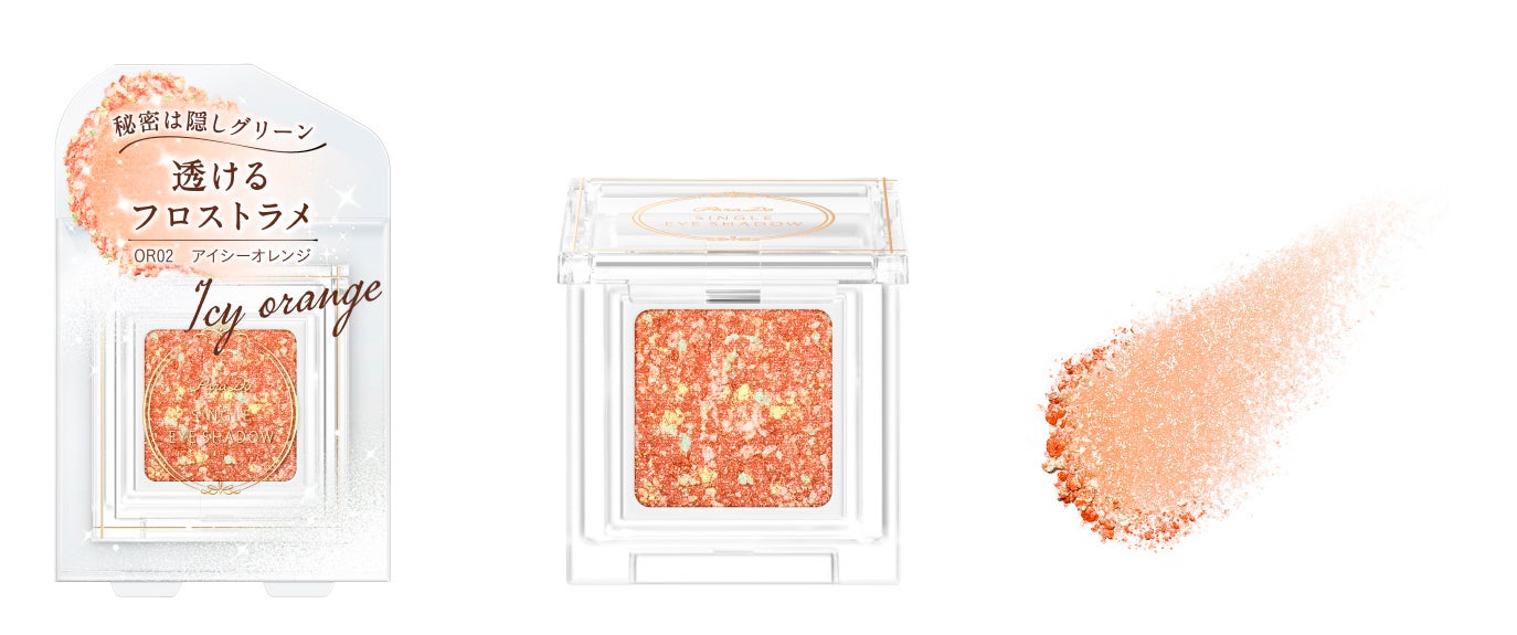 ピンクとオレンジの新色は寒色ラメで涼やかな目もとを演出し、肌になじむ肌どけ感や3色ラメ効果が特徴です。