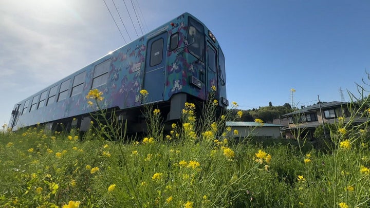 - 車両は花でラッピング、三山さんがけん玉技を披露