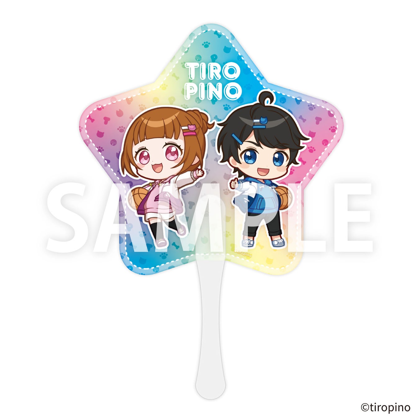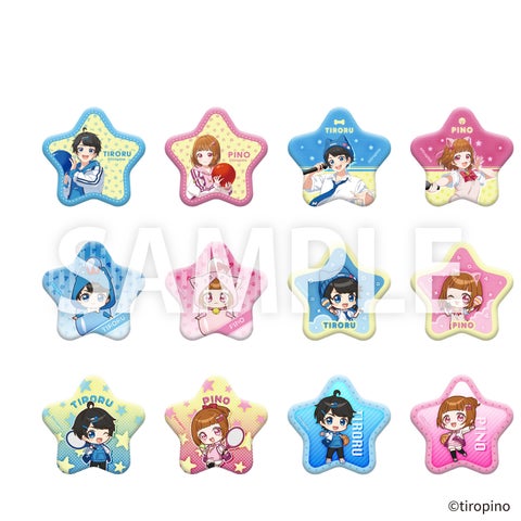 ちろぴの描きおろしイラストを使用したアクリルスタンドや星形缶バッジ、ピン、ダイカットクッションなどのグッズが登場します。