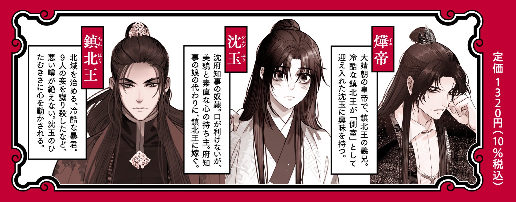 登場人物には鎮北王や沈玉、燁帝などが登場し、愛と独占欲、嫉妬が入り混じる中華ファンタジー作品です。