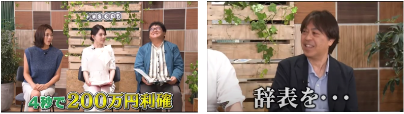 - カンニング竹山さんがMCを務め、著名投資家やタレントが登場