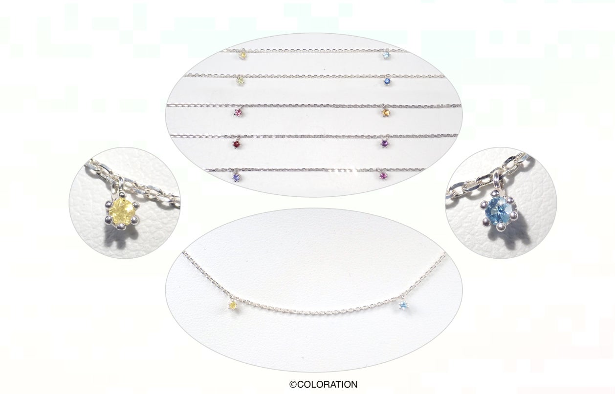 各アイテムはキャラクターのイメージカラーに合わせた天然石を使用。
