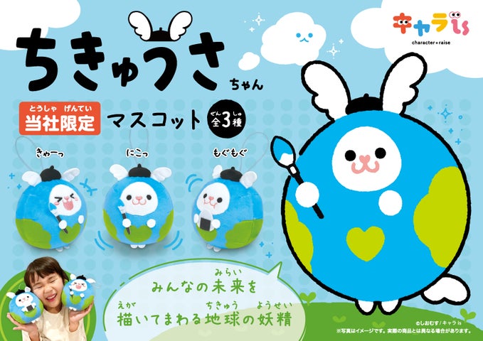 地球の妖精「ちきゅうさちゃん」は未来を描く存在で、ベレー帽と筆を持ち、動植物と仲良し。
