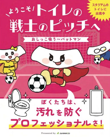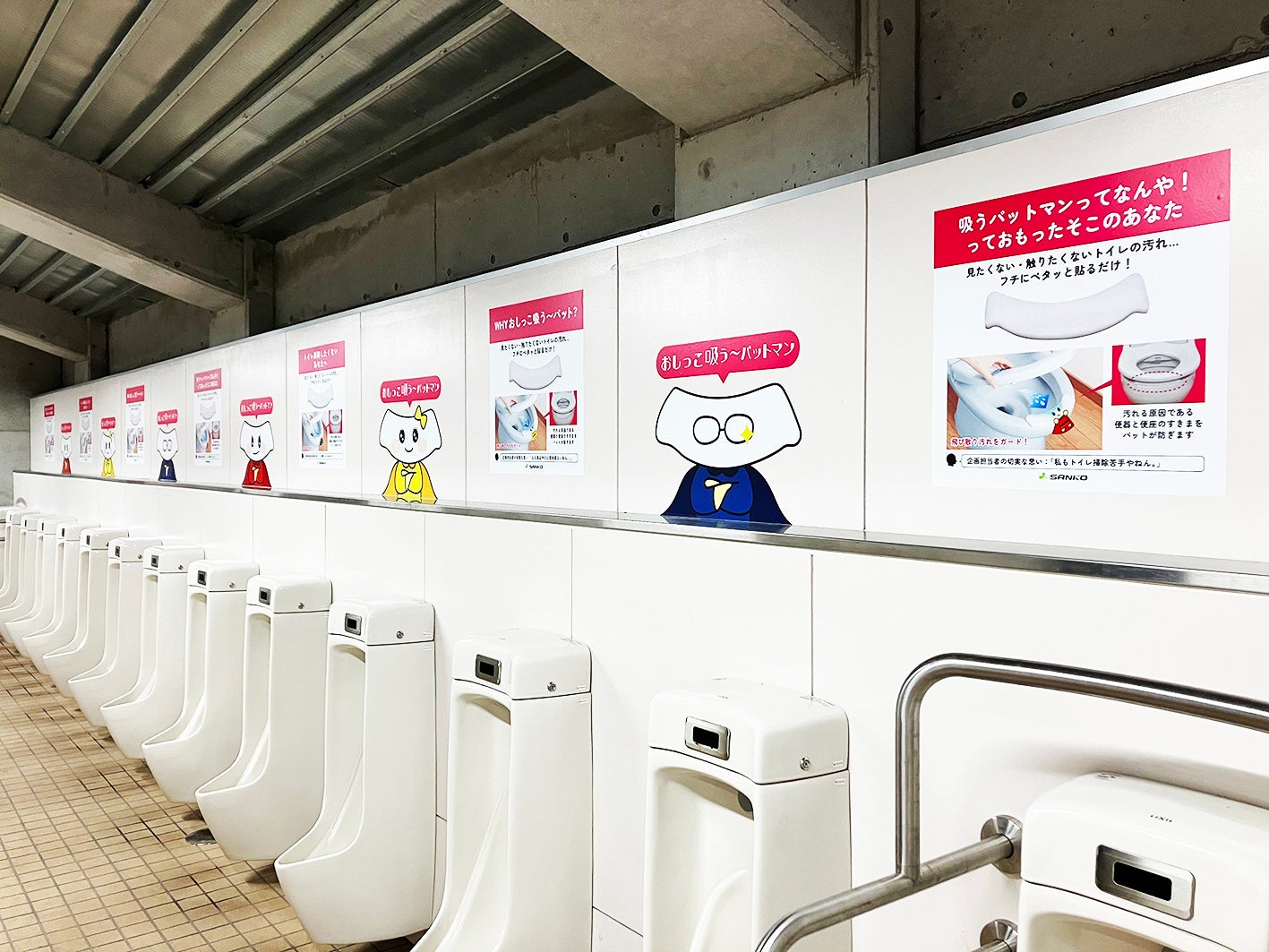 2024年6月1日から2025年5月末まで、大阪のヨドコウ桜スタジアム北スタンドの男女トイレに、トイレ汚れ防止商品「おしっこ吸う~パット」のキャラクターを使用した装飾が施されます。