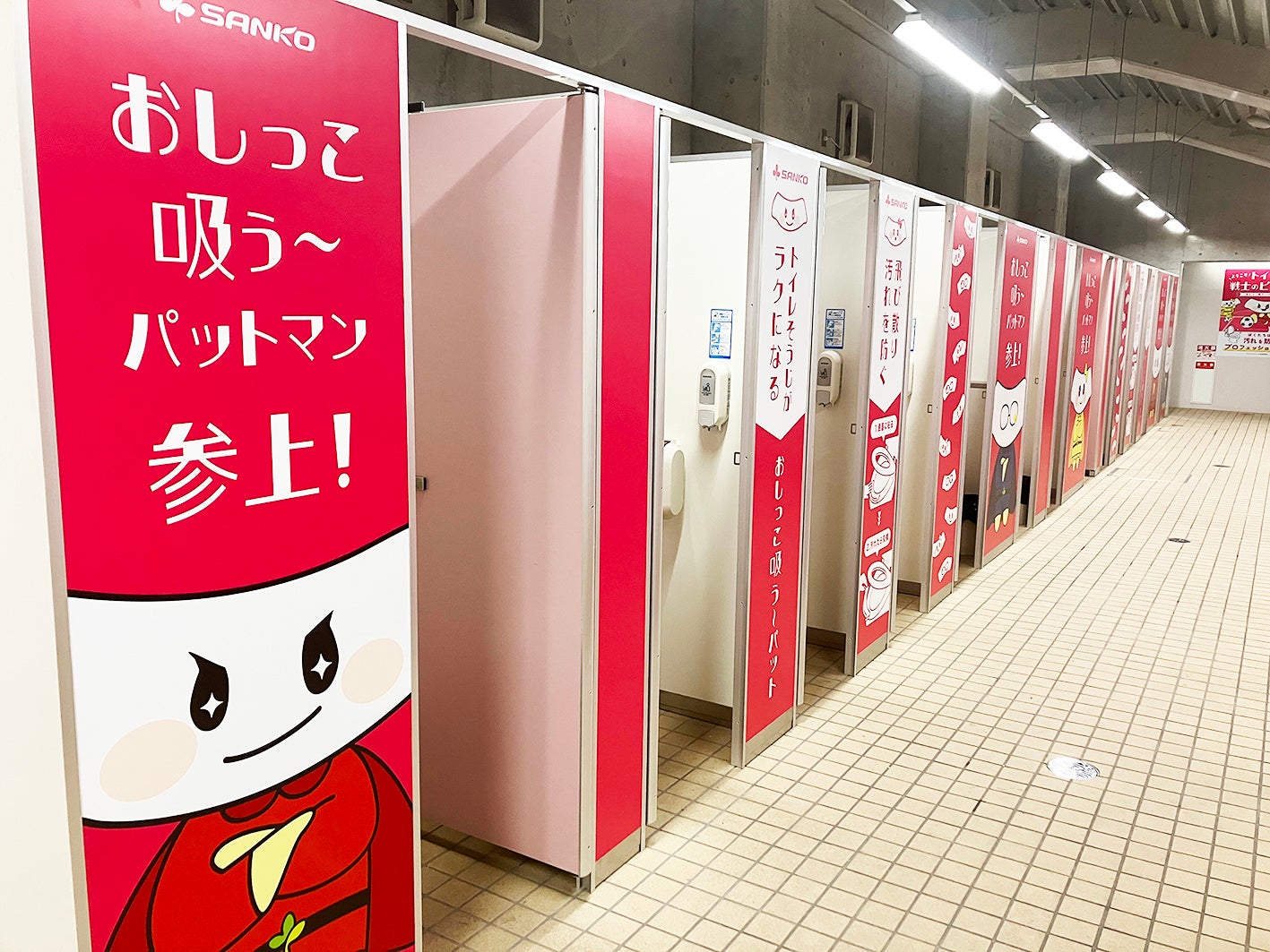 - 2024年6月1日から2025年5月末まで、大阪のヨドコウ桜スタジアム北スタンド男女トイレに「おしっこ吸う~パット」のキャラクター装飾