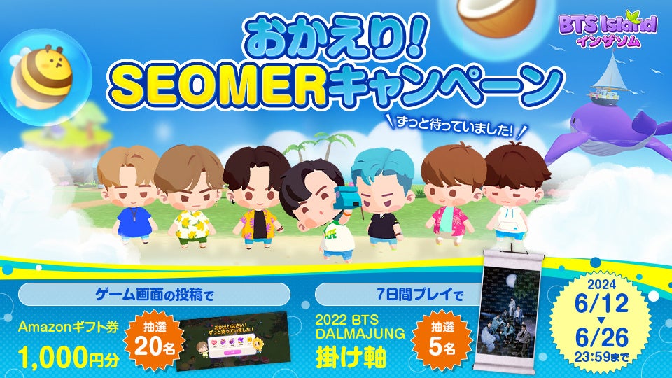また、Twitterキャンペーンも実施中で、ゲーム内のスクリーンショットを投稿するとAmazonギフトカードやBTSの掛け軸が当たります。