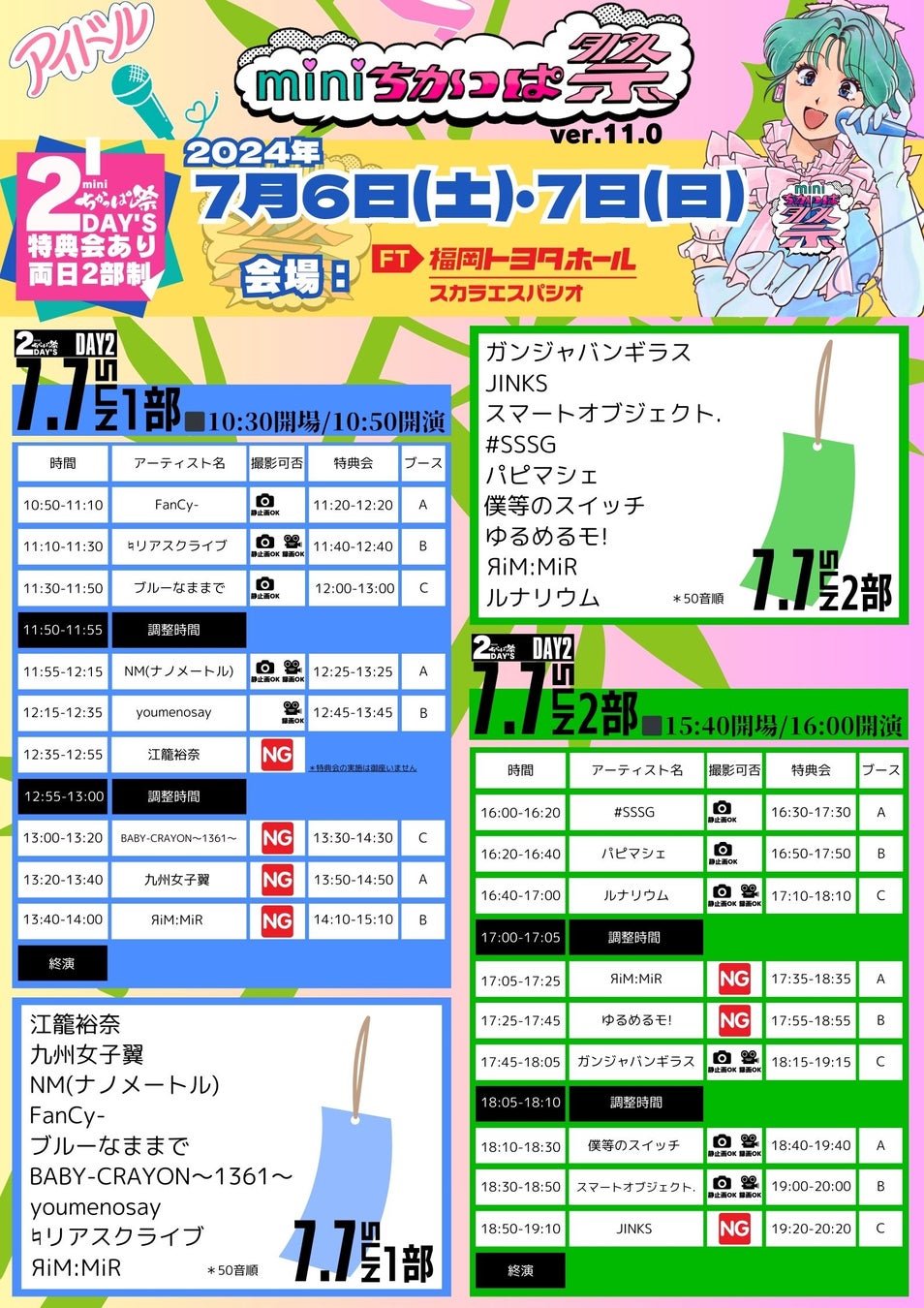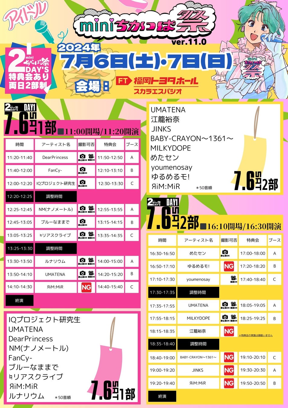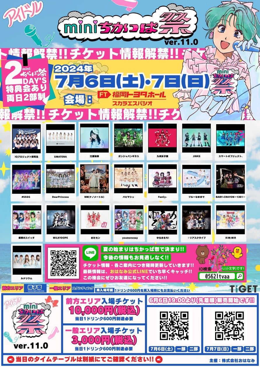 2024年7月6日(土)、7日(日)に福岡トヨタホールスカラエスパシオで開催される「miniちかっぱ祭ver11.0」のチケットはTIGETで販売中です。