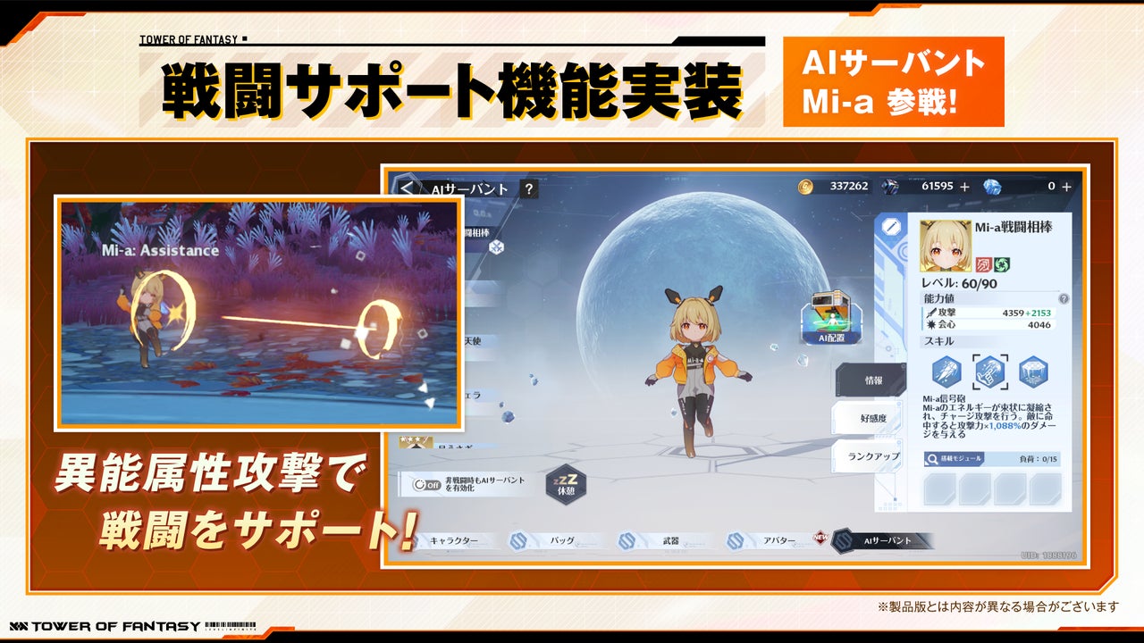 新機能として「戦闘サポート機能」が追加されます。AIサーバント「Mi-a」も戦闘に参加可能になりました。異能属性攻撃で、戦闘をサポートできます!