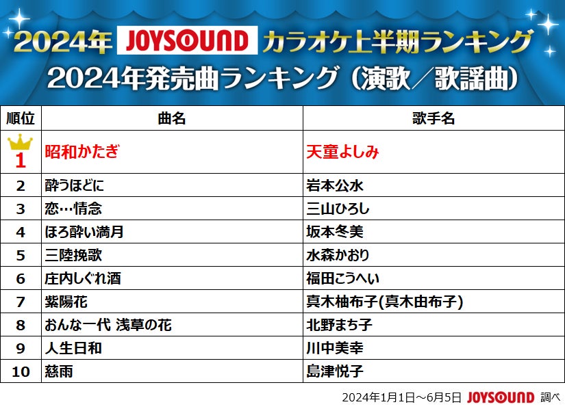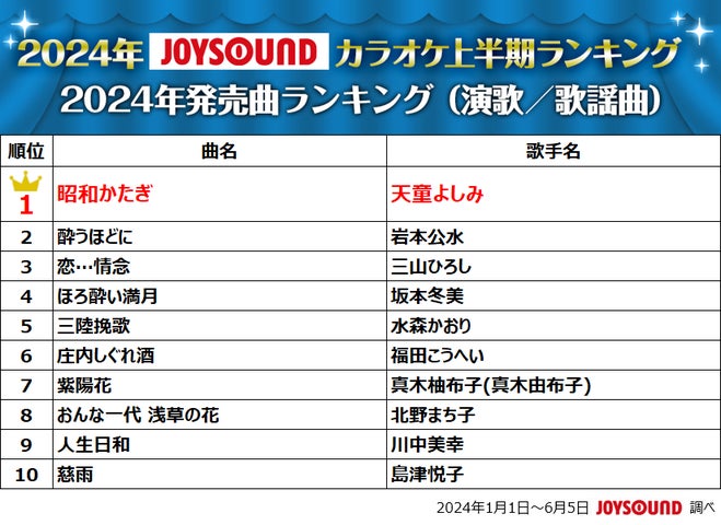 2024年上半期のJOYSOUNDカラオケランキングが発表されました。