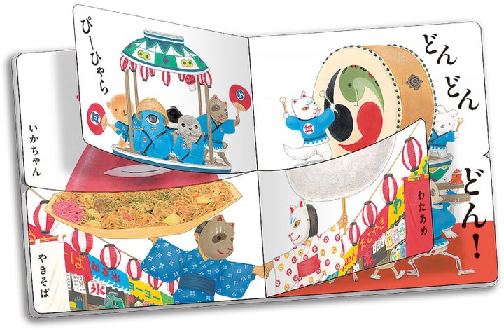 前作同様、ユニークなしかけと奇想天外な絵と言葉の組み合わせが特徴で、お祭りをテーマにしたナンセンスな楽しさが満載です。