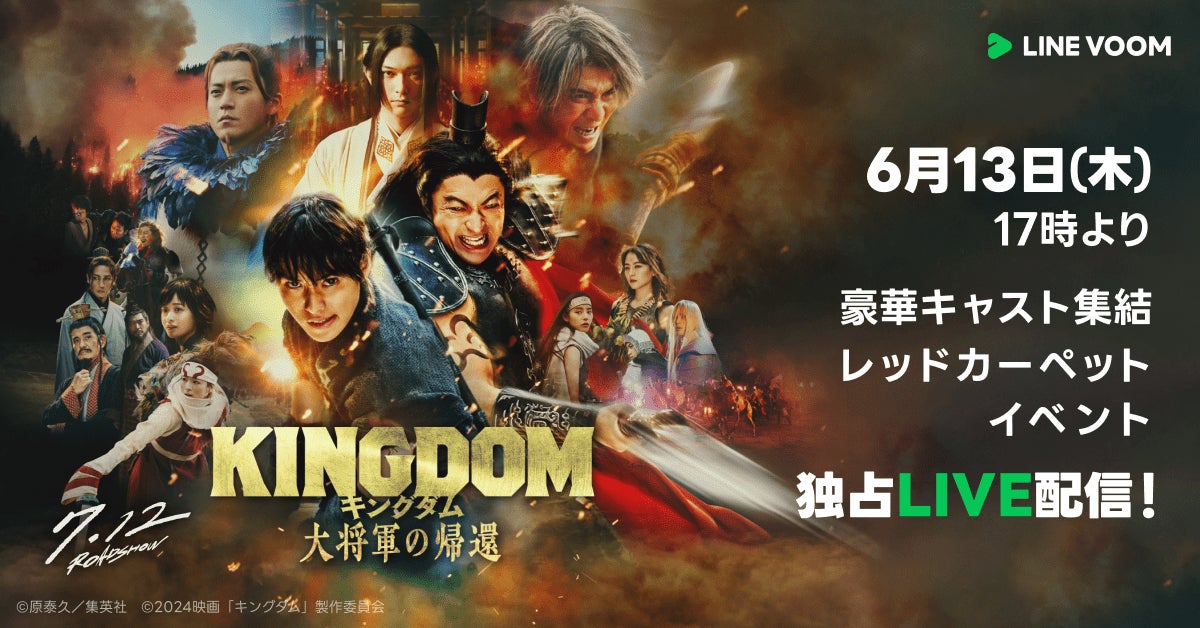 - 2024年6月13日に映画『キングダム 大将軍の帰還』のレッドカーペットイベントをLINE VOOMが独占生配信