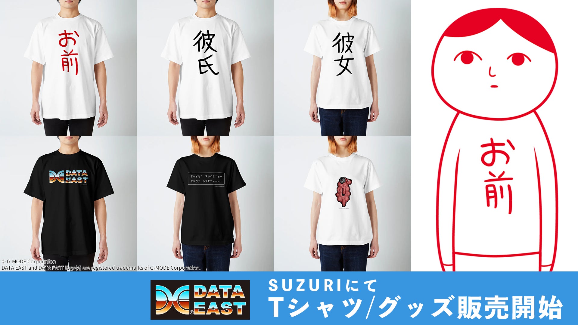ラインナップには「お前Tシャツ」「彼氏Tシャツ」などがあり、データイーストの商品も人気です。