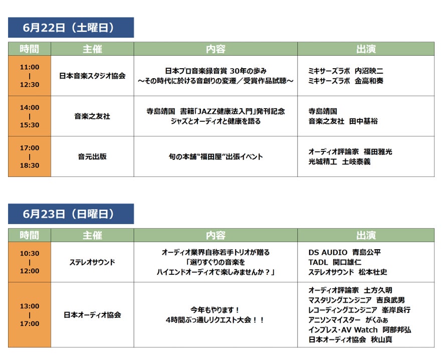 G701では、オーディオ専門誌主催の出版社イベントや日本プロ音楽録音賞の30周年記念イベントが行われます。