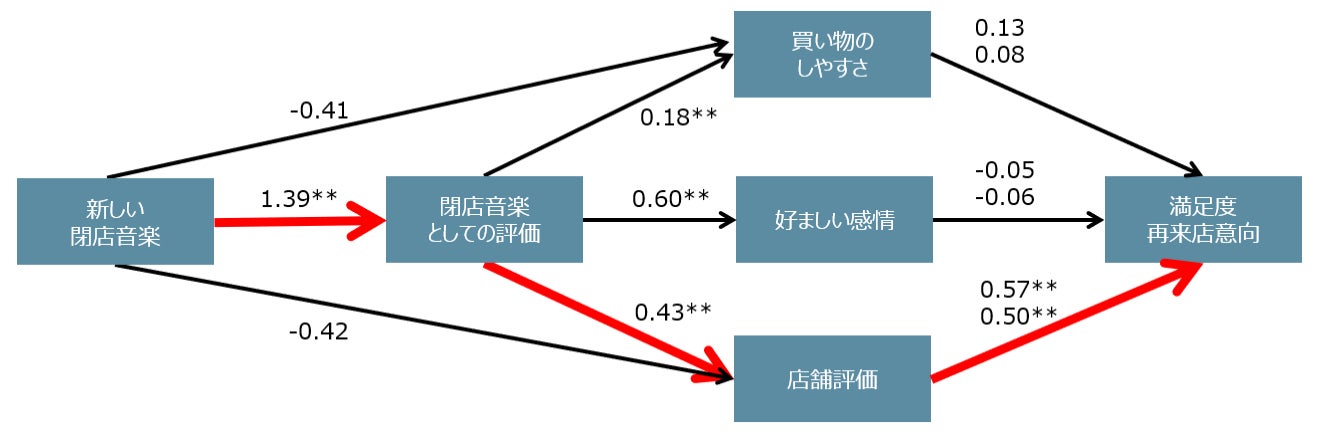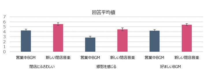 調査によると、この音楽は閉店時間にふさわしく、お客様の満足度や再来店意向を高める効果があると示されました。