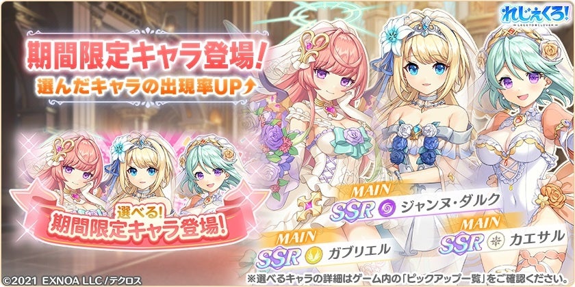 2024年6月11日から開催される「選べるウェディングガチャ2024前編」では、ジャンヌ・ダルク、ガブリエル、カエサルのウェディング衣装が登場します。