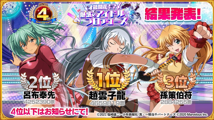 4周年前夜祭記念の闘士人気投票結果が発表され、上位3位は特別な闘士として登場予定。