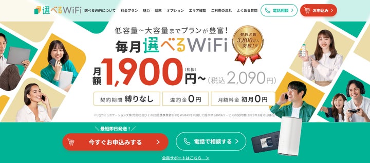 選べるWiFiは、毎月プランを選択できるポケット型WiFiで、最大4.2Gbpsの高速通信を提供し、KDDIの回線を利用しています。