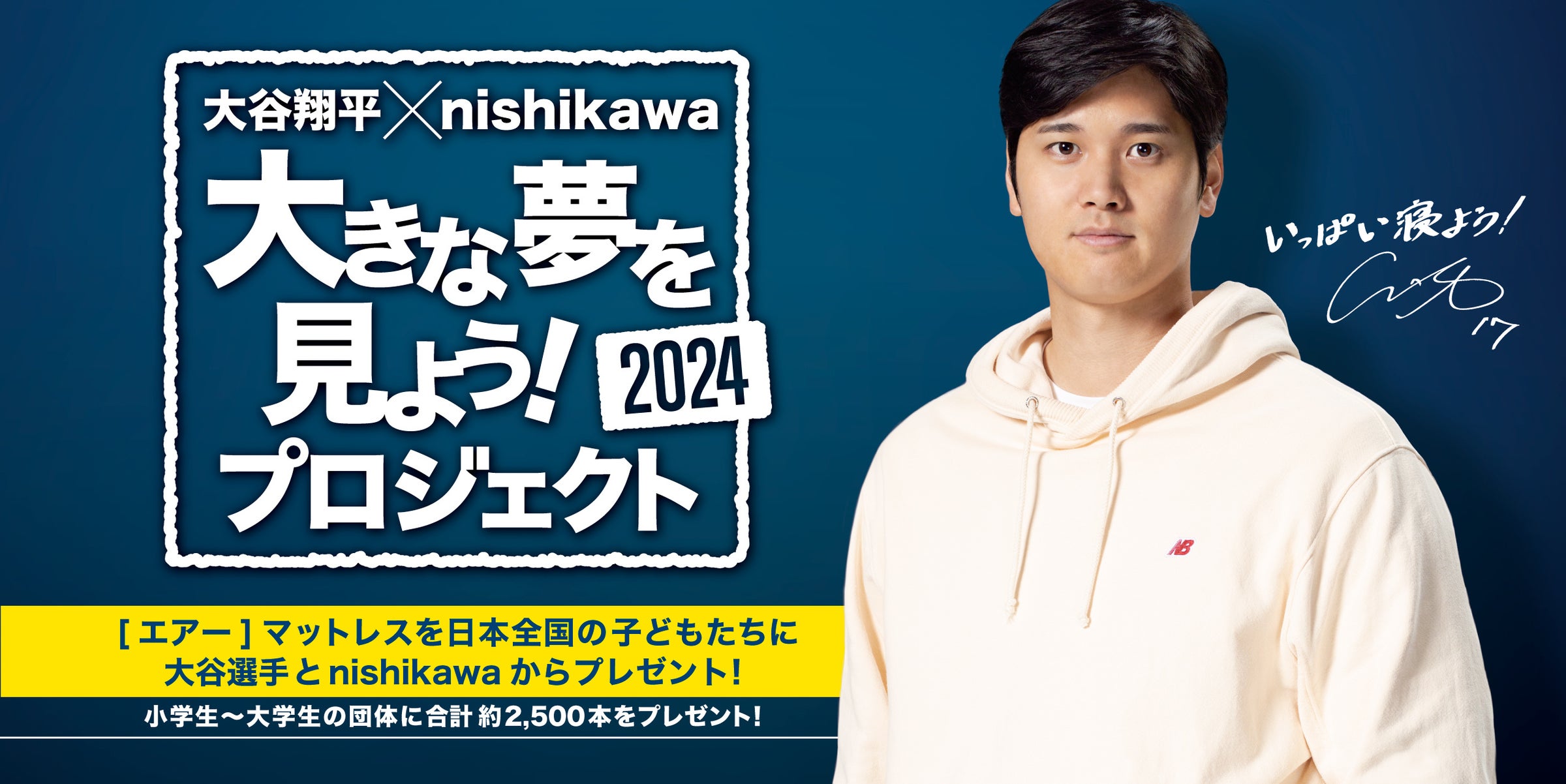 西川株式会社が展開するコンディショニング・マットレス[エアー]のプロジェクト『大きな夢を見よう!』では、大谷翔平選手と共に子どもたちの夢を募集しています。