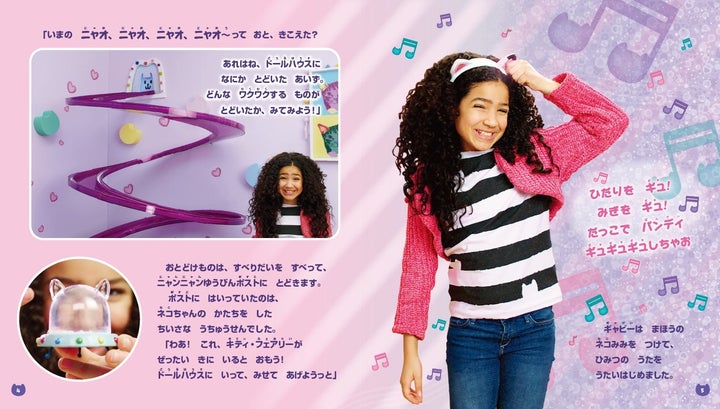 物語では、ギャビーが魔法のネコ耳で小さくなり、ドールハウスで冒険する姿が描かれています。