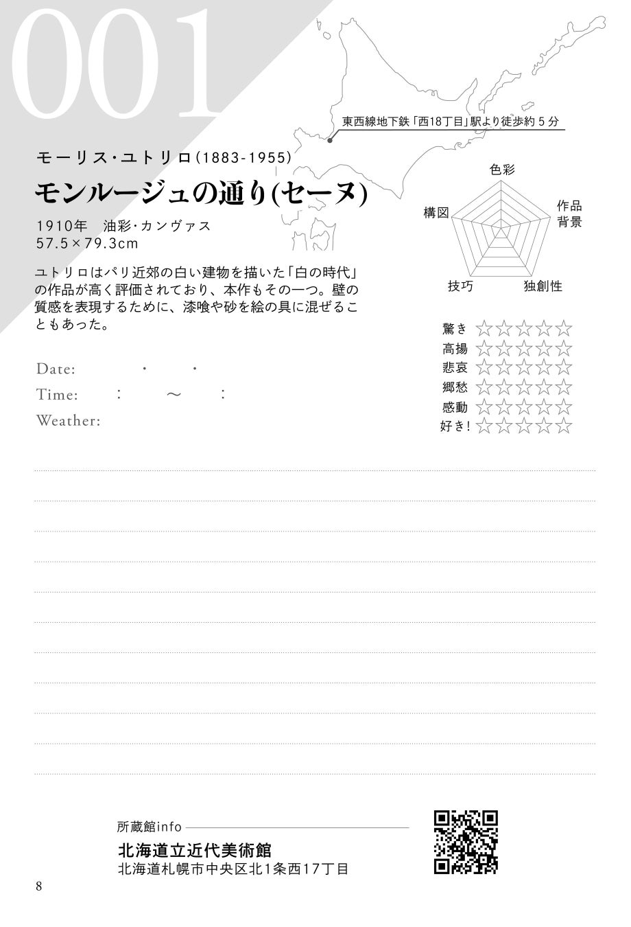 『日本全国名画巡礼ノート』は、日本国内の美術館に収蔵されている100点の名画を鑑賞し、感想を記入するノートです。