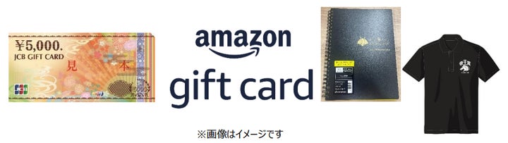- Amazonギフトカード、TCKグッズセット、JCBギフトカード、グルメカタログギフト
