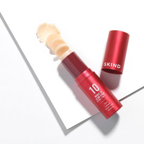 韓国発の大手製薬会社が手掛けるSKINDの人気商品「MAGIC 10 GLOW STICK」は、日焼け止め・しわ・美白ケアができるスティック美容液です。