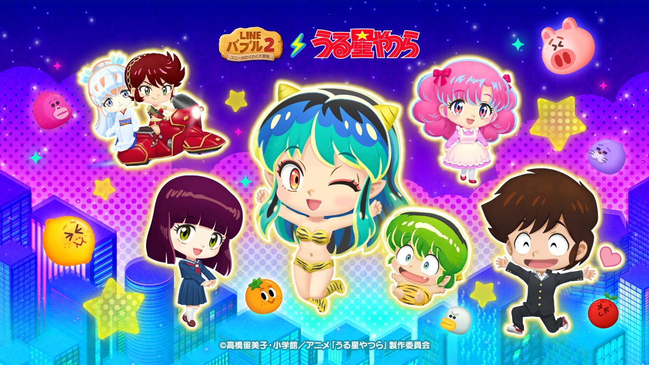 LINE バブル2では、無料でコラボLINEスタンプが手に入り、プレミアムガチャには『うる星やつら』キャラクターが登場します。
