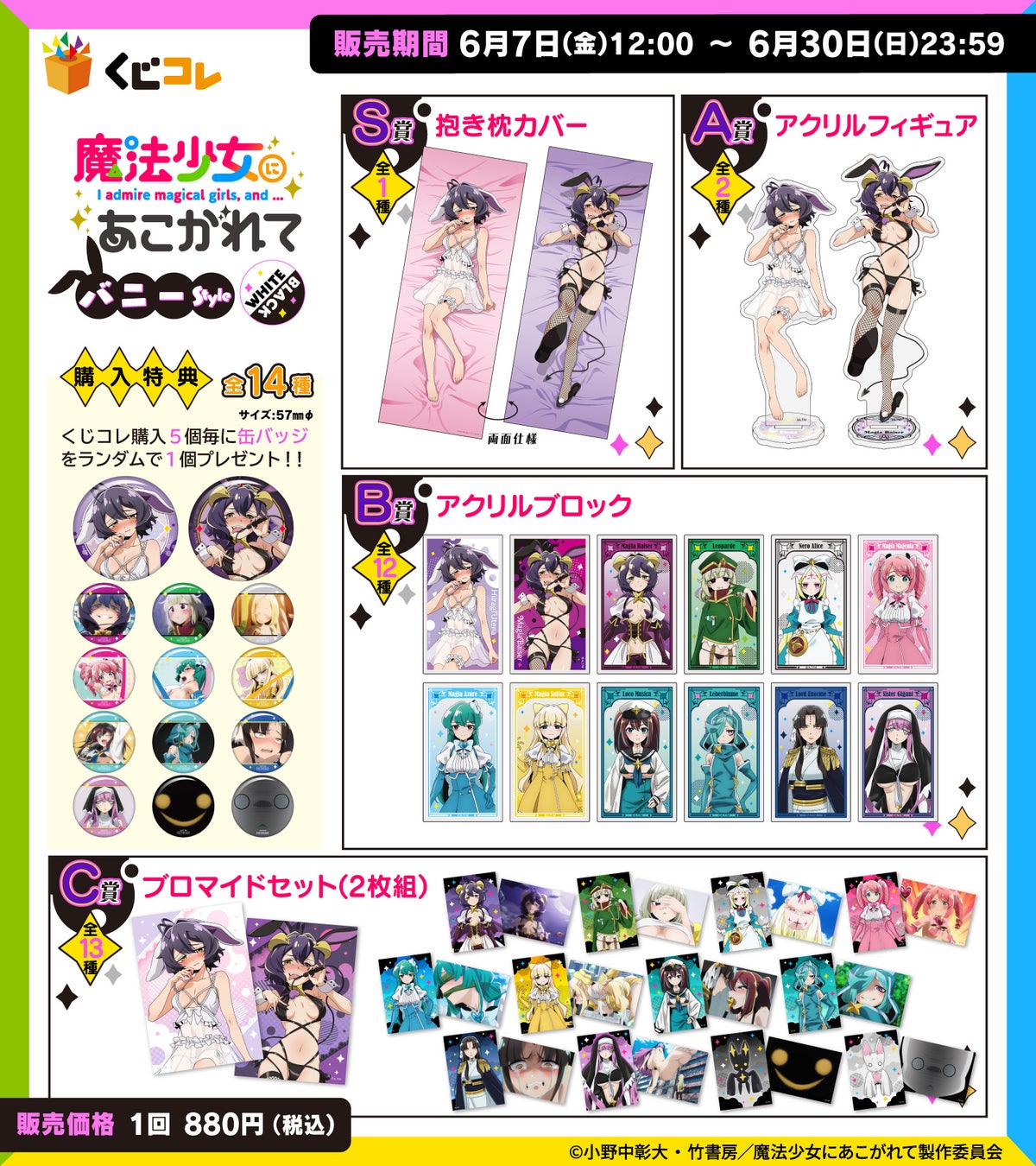 「魔法少女に憧れる」をテーマにした新作イラストを使用した「くじコレ」が登場!約160cmの抱き枕カバーやアクリルフィギュア、アクリルブロックなど多彩な商品を取り揃えています。