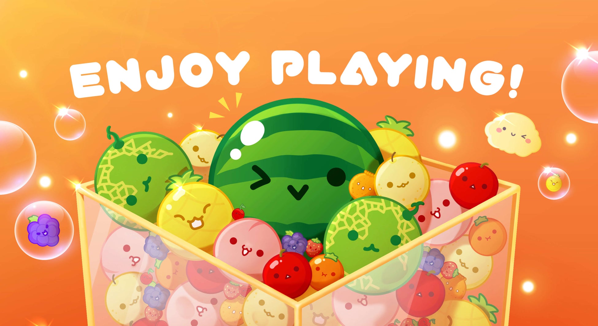 ゲームはフルーツを合わせて大きなスイカを作るもので、フルーツ同士をぶつけて大きくしていきます。