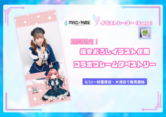 イラストレーターの『kana』と『MAID MADE』がコラボした新商品が登場!「魔導人形設計図『kana』コラボフレームver.」はMAID√MADE各店舗で2024年6月21日から7月20日まで受注生産されます。