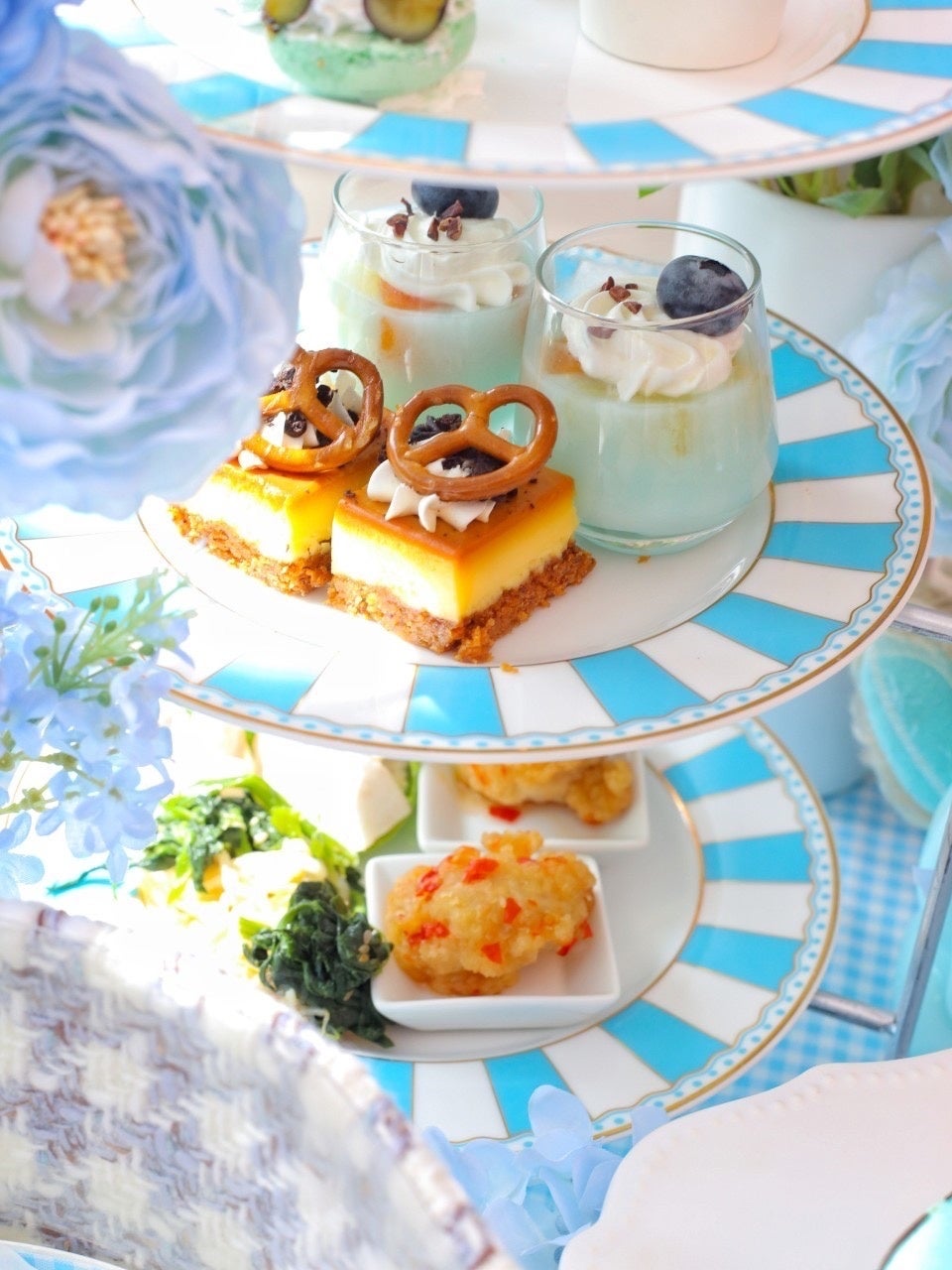 【ツイードフラワーブーケと水色】をテーマとした韓国風アフタヌーンティー