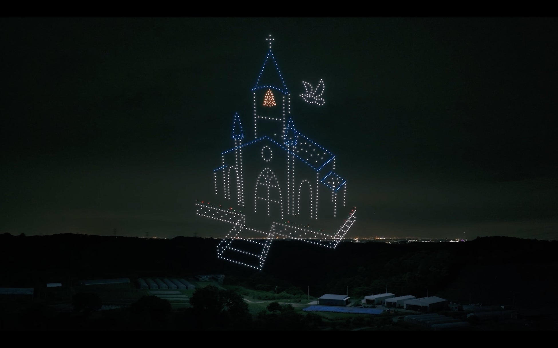 - ドローンリング運ぶ感動的な演出、2ヵ月制作期間、最大1,500機の飛行成功