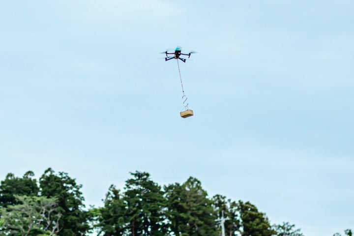 新郎新婦の指輪交換ではドローンがリングを運び、感動を演出しました。