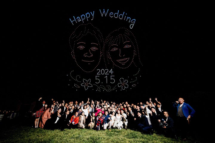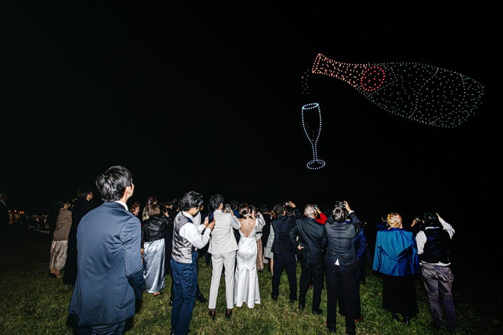 ウエディング・ドローンショーは会場やアニメーションをカスタマイズ可能で、制作期間は約2ヵ月です。