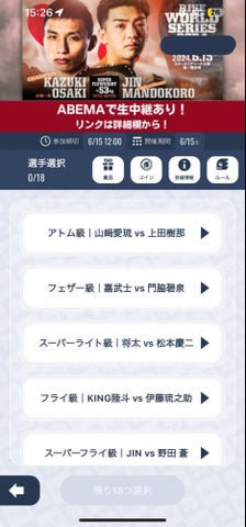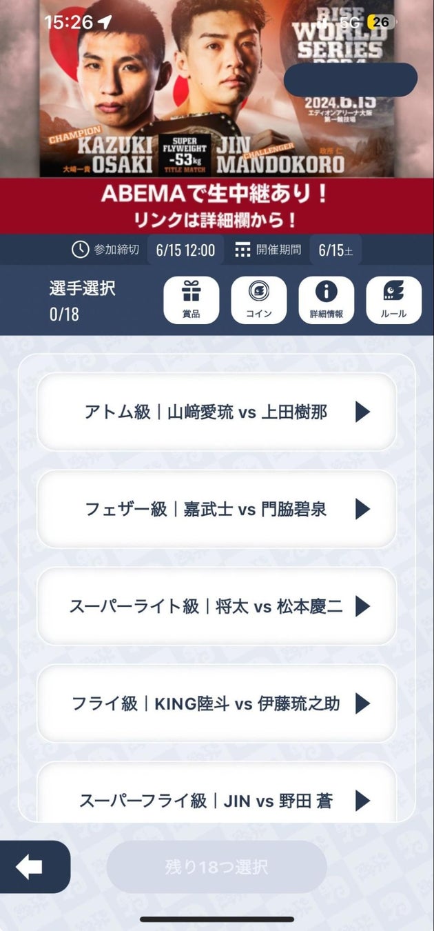 勝敗予想ではKO・TKO勝ちや判定勝ちなどの結果も予想可能で、予想成績上位者にはサイン入りグッズやペアチケットがプレゼントされます。