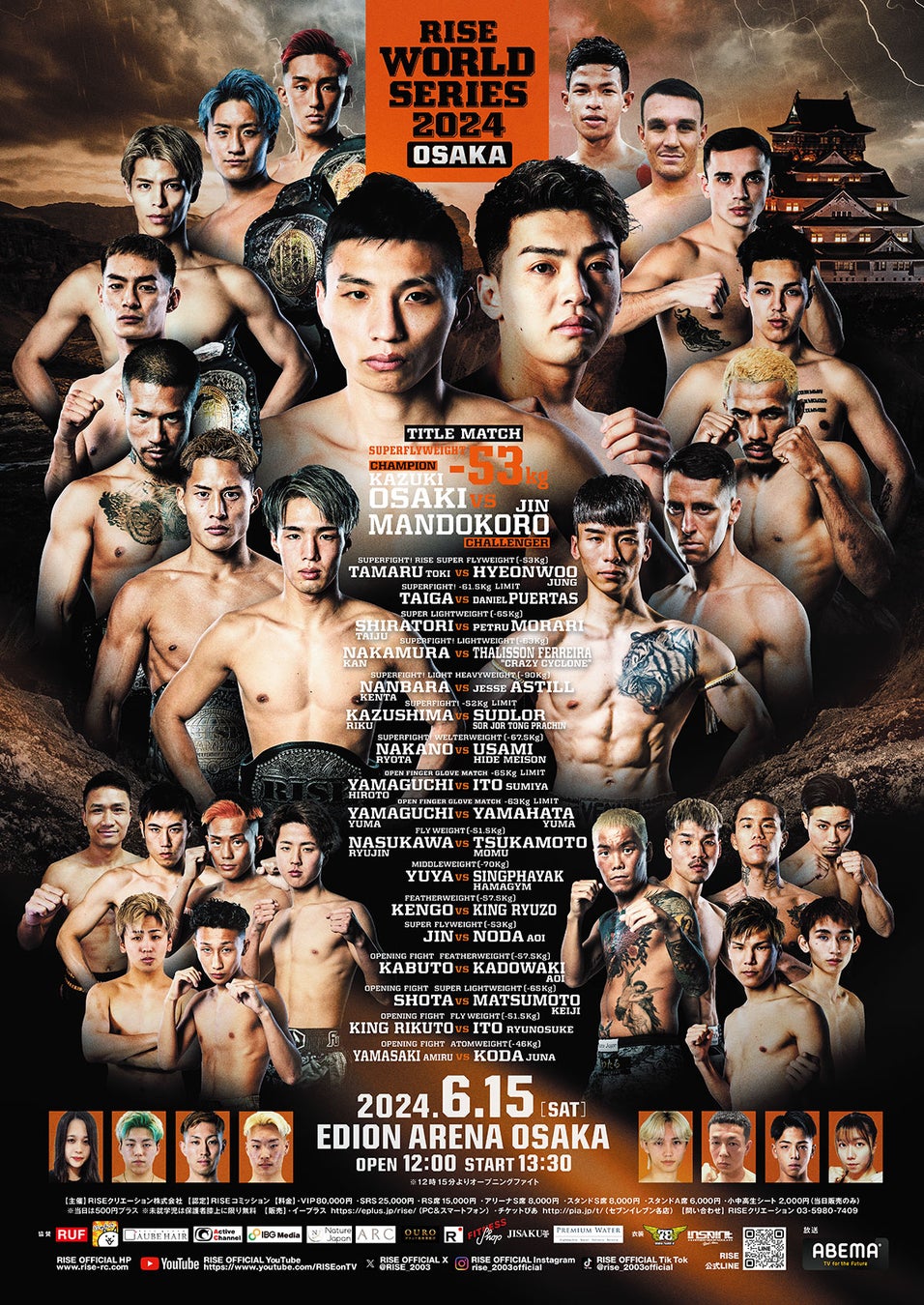 『RISE WORLD SERIES 2024 OSAKA』では、メインイベントの大﨑一貴対政所仁のタイトルマッチを含む18試合が行われます。