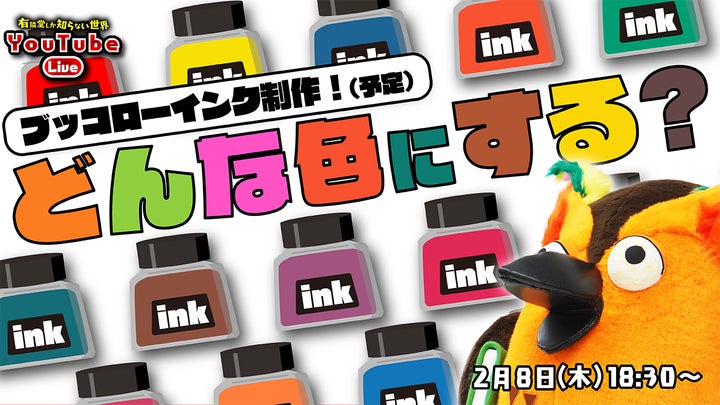 特に注目の「R.B.ブッコローオリジナルインク 橙羽色」は、京都の文房具メーカーと共同制作され、天然素材の「紅花」をベースにしたインクです。