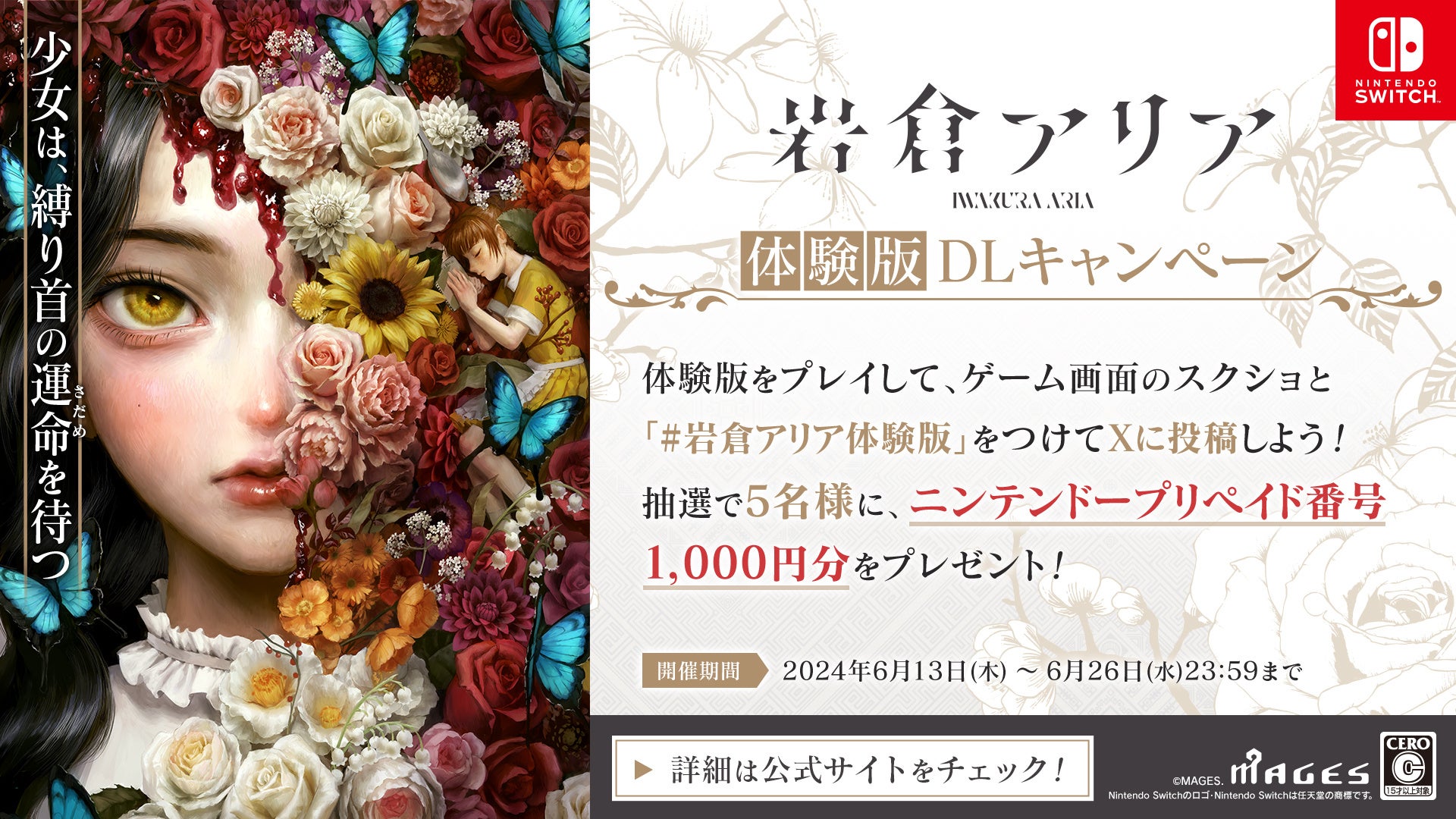 株式会社MAGES.は、Nintendo Switch™用ゲーム『岩倉アリア』のダウンロード版予約受付と体験版配信を開始しました。