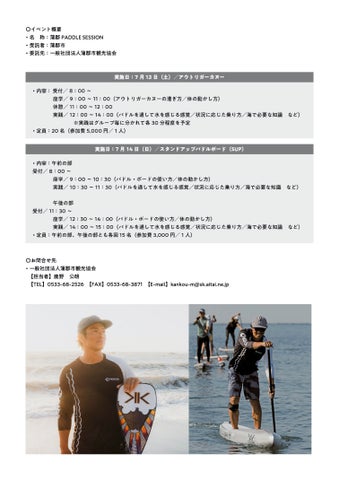 蒲郡市観光協会が7月13日(土)・14日(日)に開催する「蒲郡 PADDLE SESSION」イベントは、金子ケニー氏を講師に迎えるアウトリガーカヌーやSUPに関するイベントです。