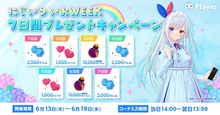 - Playio、にじいろ いおWEEK7日間連続プレゼントキャンペーン