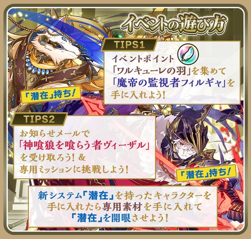 新キャラクター「神喰狼を喰らう者ヴィーザル」も登場し、潜在Lvを上げることで新たな効果を獲得できます。