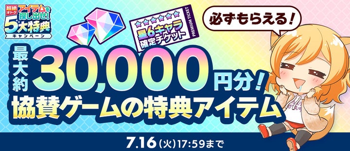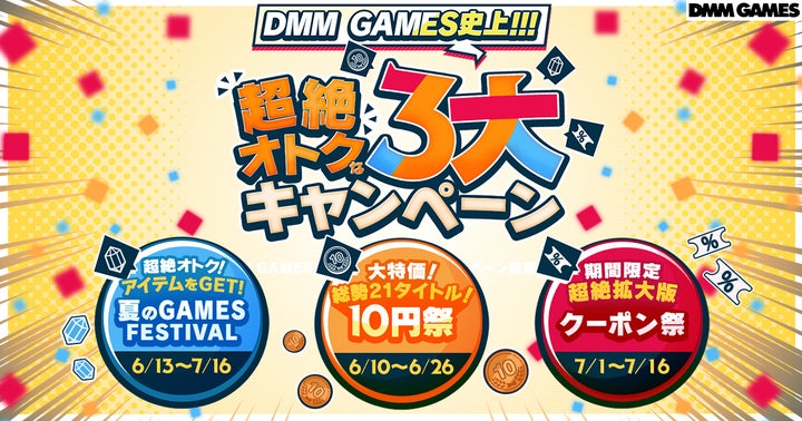 - 夏のDMM GAMES FESTIVAL:最大30,000円相当のアイテムプレゼント、毎日14万人にDMMポイント当たるルーレット