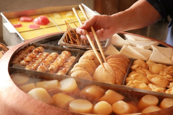 - 大きなおでん鍋で大根や江戸巾着、青竹蛸つみれなど楽しめる