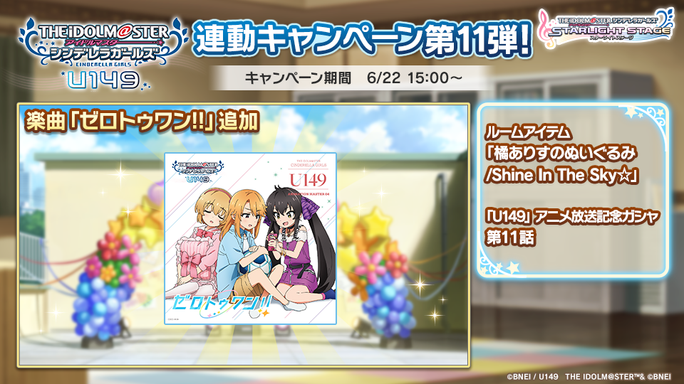 6月22日(木)より、第10話挿入歌「ゼロトゥワン!!」追加など、TV アニメ「U149」連動キャンペーン第11弾を開催中!