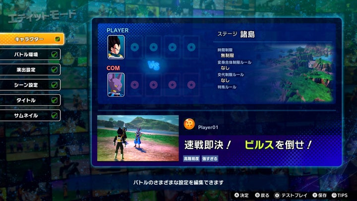 エピソードバトルでは、悟空やベジータなどのキャラクター目線で原作に忠実なバトルを楽しむことができ、カスタムバトルではオリジナルのシチュエーションバトルを作成して世界中のプレイヤーと共有することが可能です。