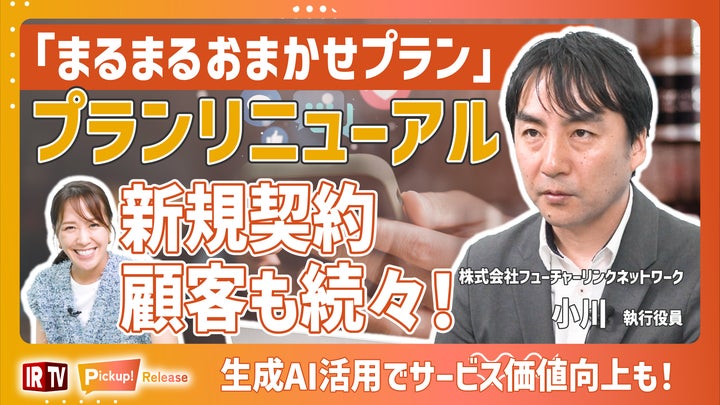 株式会社フューチャーリンクネットワークは2024年6月14日に「IRTV interviews~Pickup!Release~」に出演し、まるまるおまかせプランのリニューアルや進捗について解説しました。